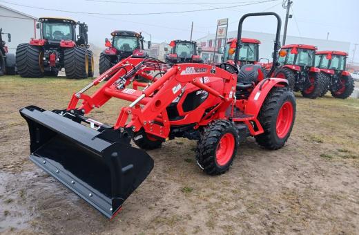 This Tractor comes with second remote valve, hst cruise kit, 3rd function valve kit, loader, bolt on cutting edge, block heater.